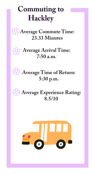 He typically gets home each day around 5:30, as he is exempted for the season but enjoys using the Hackley gym after school. He does believe that his commute is quite good and rates his commute a 10/10, but rates the traffic a 7/10 as it really depends on the day and time. Overall, he believes that his experience of commuting to Hackley has been very positive.
