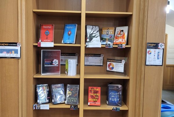 Cassandra’s goal with this display is to encourage students to look into points of view that they may not have originally agreed with, and to understand the impact of challenging material. She states, “A) it’s a book and you can put it down, and b) if we only read and consume material that we agree with, we are never going to grow and challenge our own biases.”