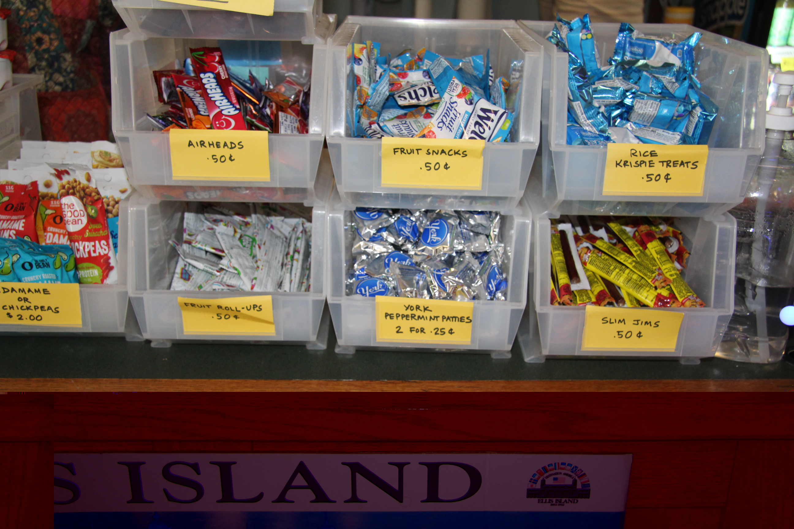 The Tuck offers a variety of snacks, including chips, cookies, ramen, cereal, Mac and cheese, and candy in the afternoons.