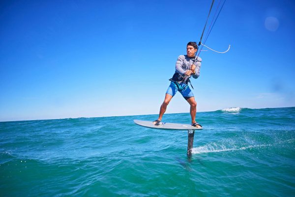 Kite foil sailing, the sport in which Markus excels, combines kiteboarding and foiling. In this water sport, the sailor uses a large kite to harness wind power while riding a board equipped with a hydrofoil, allowing them to glide above the water’s surface as they gain speed.